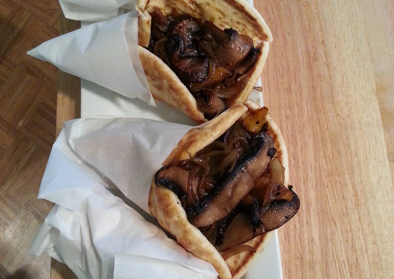 - In the top of the bread and yhe sauté porrobello wrap like a cone and wrap with parchment paper and serve.
