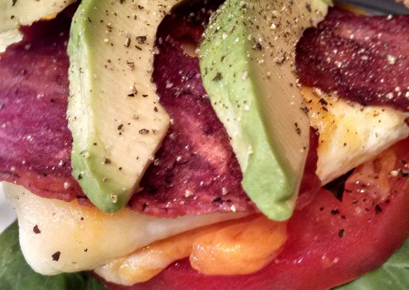 - On 1 side of toast spread 1/2 tbsp of light mayo then layer spinach, tomato, cooked egg white with cheese, turkey bacon and finally avocado slices. Pepper generously! Spread remaining 1/2 tbsp of light mayo on other toast slice. Place it on top and dive in!!