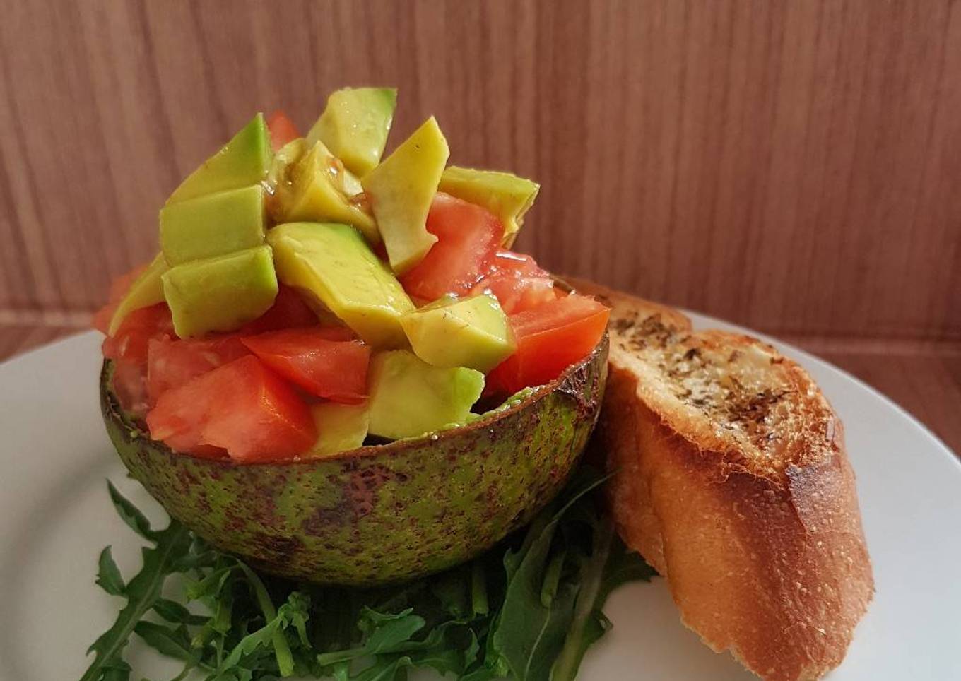 There were leftover avocado, tomato, and garlic bread so i decided to make salad. With an addition of rocket leaves, it become a great, fresh taste of salad.