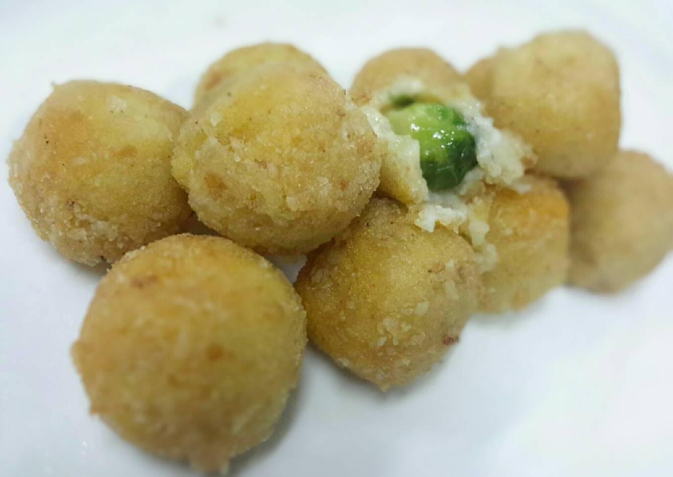 - Mix cheese with mashed potato,mix well, 15 mins in freeze to let it set ,easy to form to balls
