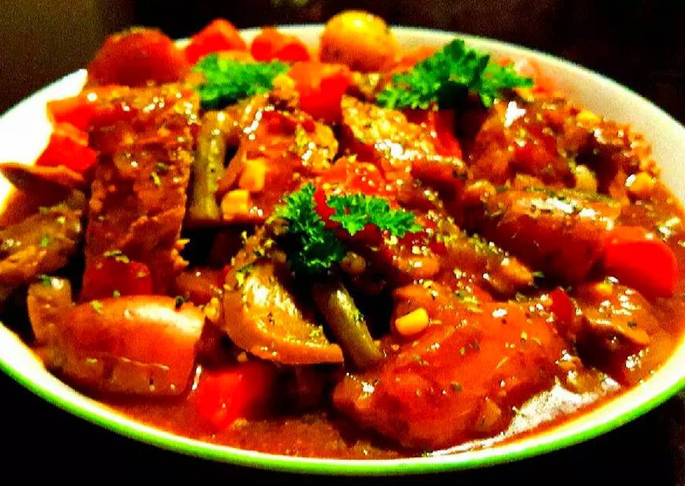 - Serve with fresh crispy French bread. Garnish with fresh parsley. Enjoy!
