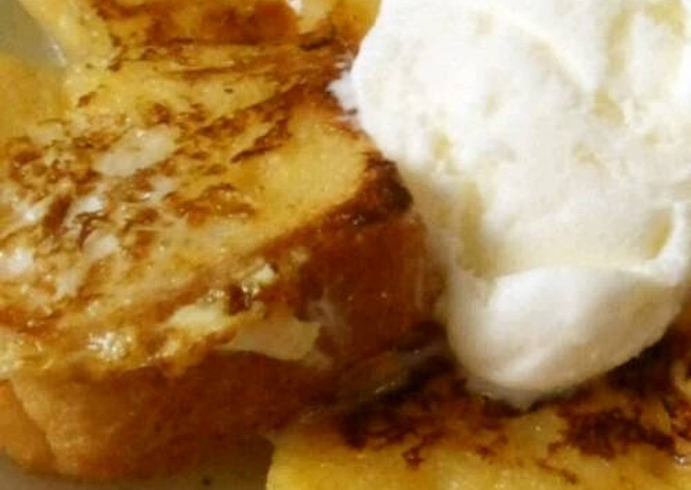 - Heat butter in a frying pan and cook the bread until both sides are crisp and browned. It's done! Top with vanilla ice cream, if you like, and enjoy!