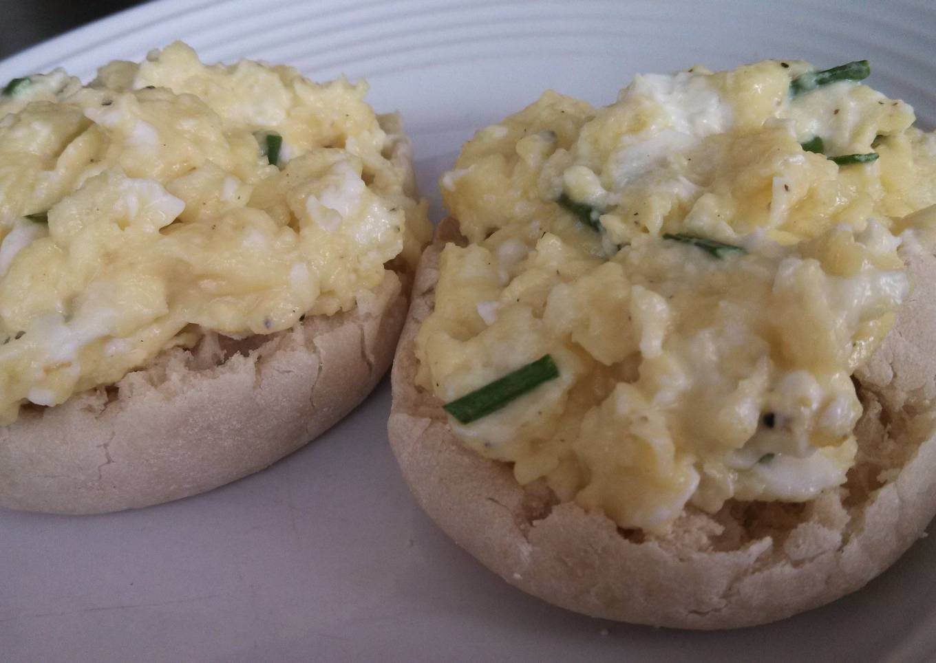 Steps to make to make Baguette with Chevre Scrambled Eggs and Chives