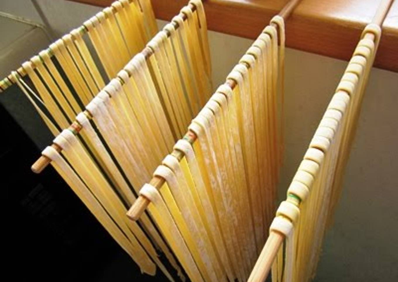 - Different from the Chinese noodles, you have to dry out the pasta a little so that it won't stick together. We hang the pasta on cooking chopsticks to dry.