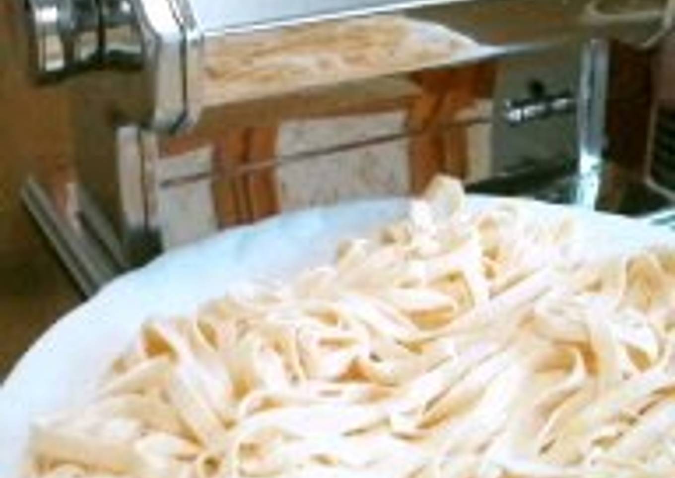 - Cutting the dough: Flour the pasta dough, and send it through the 6 mm cutter as you slowly turn the hand crank. Hang the finished pasta on a drying rack or spread on a baking tray to dry.