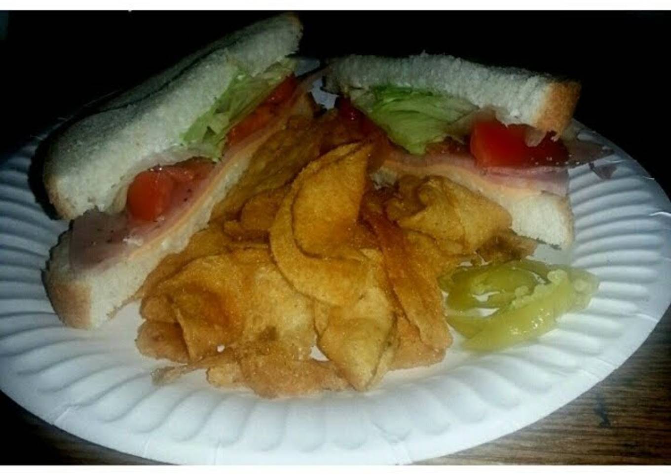 - 1 slice of bread with mayo, american cheese, 2 honey ham sandwich meat, a slice or two of tomatoes, a lil salt and pepper on tomato, lettuce, and top it off with a slice of bread spread with ranch.