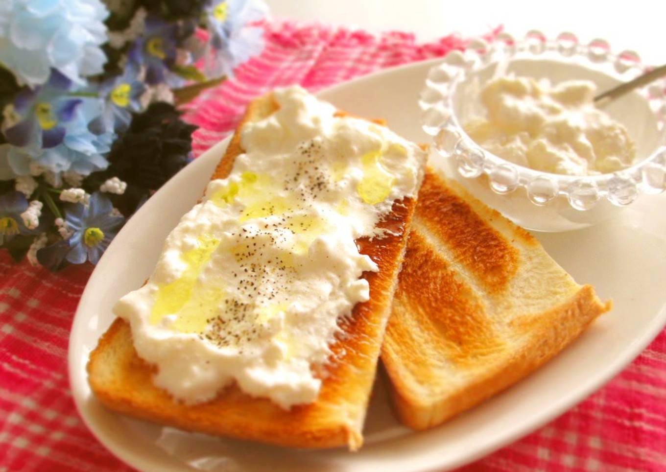 I'm surprised at how tasty salted yogurt is! It's kind of like cheese, so it's a perfect match for crispy toast.