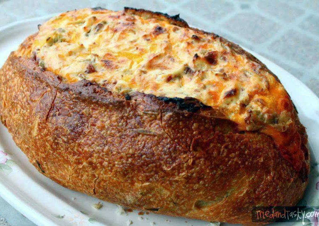 - Hollow out BREAD, place MIXTURE into hollowed out BREAD