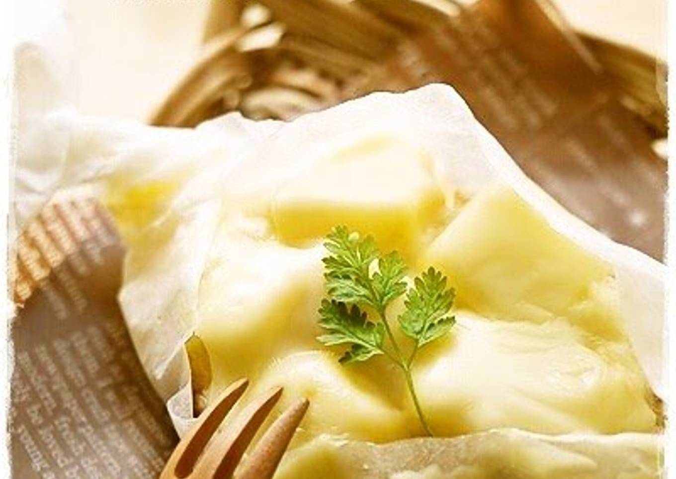 - Prepare a large sheet of parchment paper and twist the ends to make a dish.