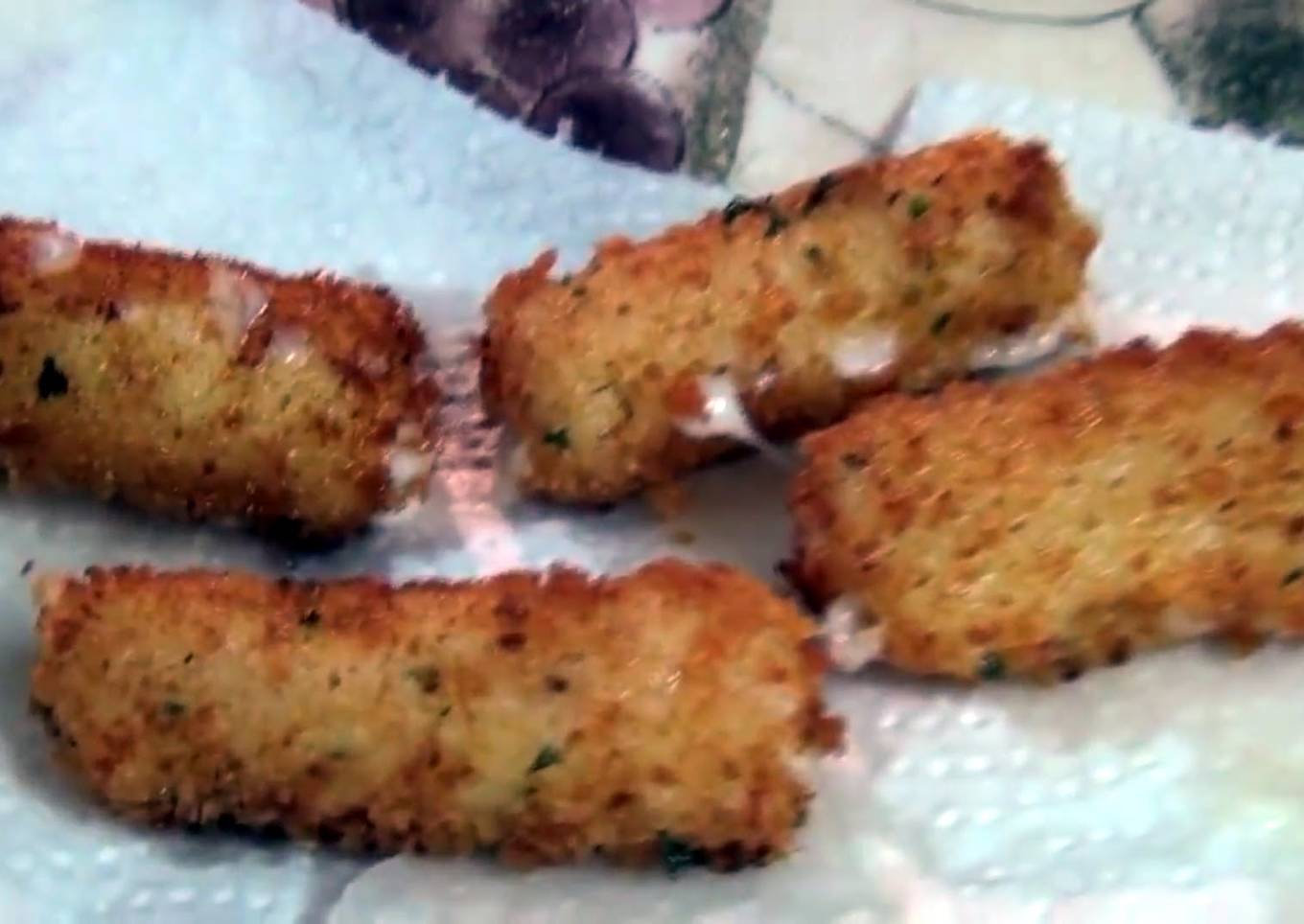 - Fry the Mozarella Sticks Once the cheese start to drip take out and drain the oil