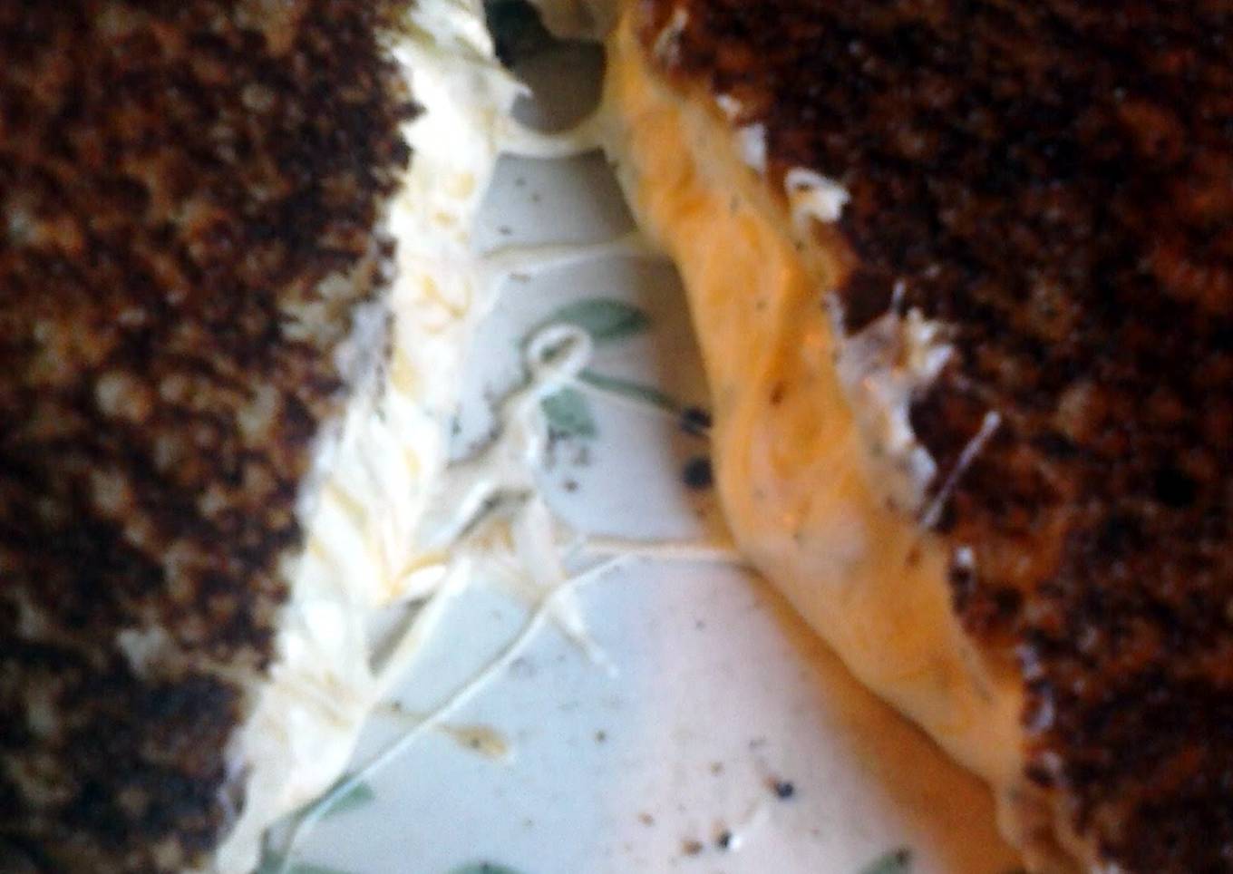 - Put both pieces of bread together (cheese in the middle) grill until toasted brown, and cheese is oooowie gooowie in the center.